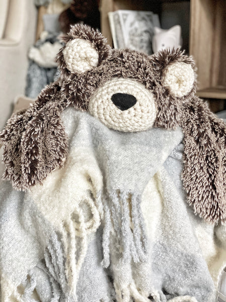 Crochet details add a whimsical touch to each animal companion.