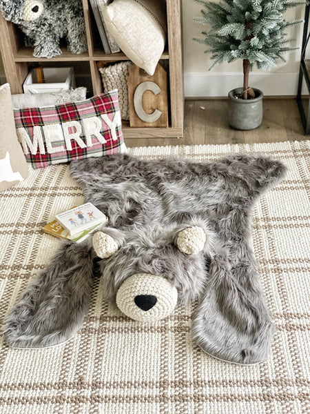 ClaraLoo Animal Rugs are made with faux fur, polyester stuffing, flannel fabric, yarn, and felt (for some of the animals).