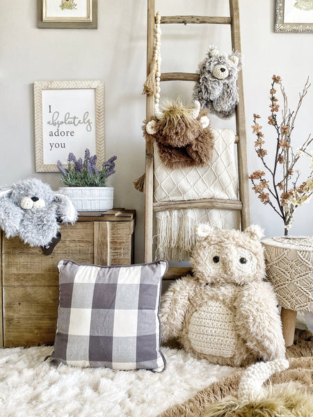 ClaraLoo Animal Loveys are frequently used to decorate nurseries, big kid rooms, playrooms, man caves, basements, and even family rooms. These charming creations are for all ages… so it’s a great addition to many rooms.